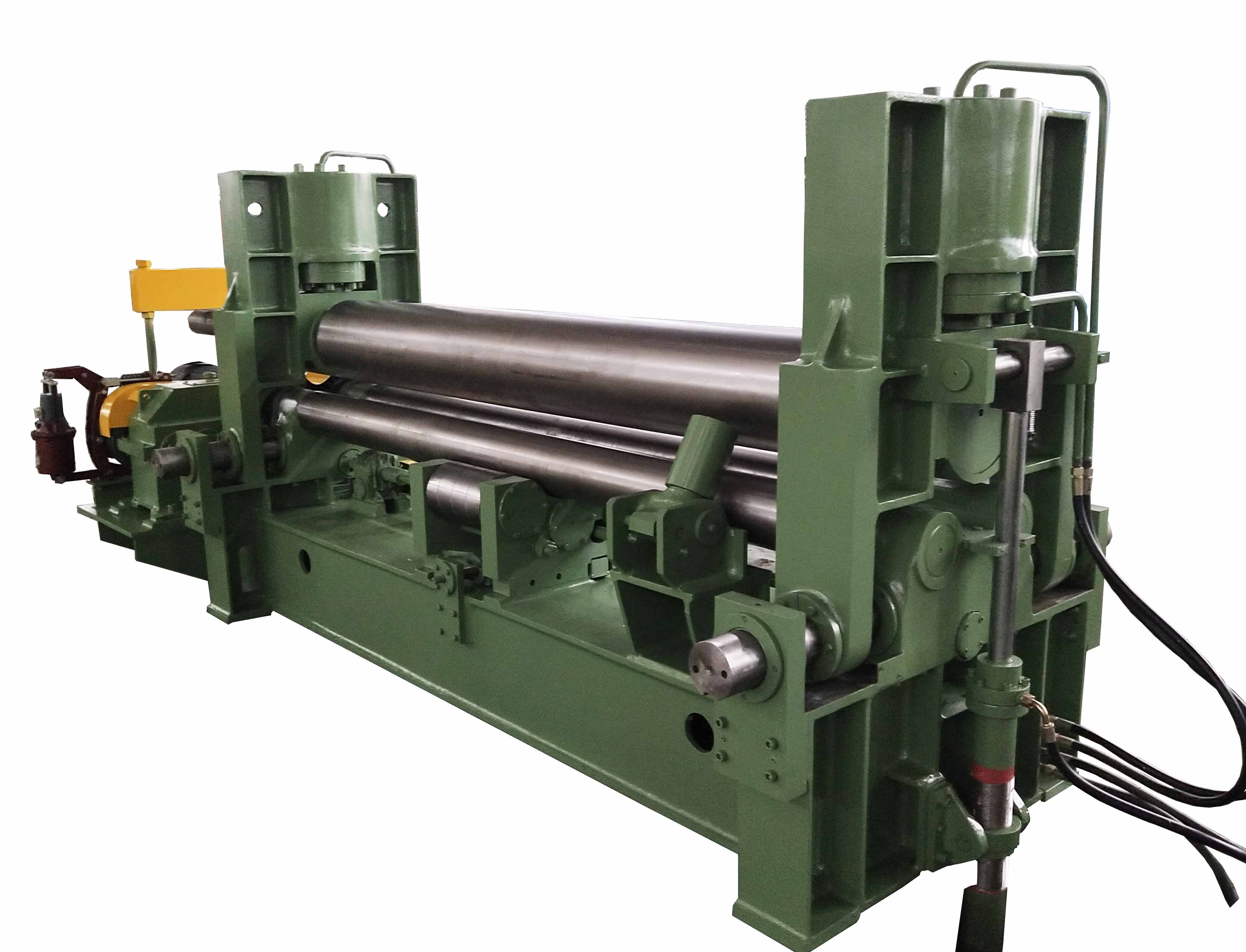 W11SNC萬(wàn)能式三輥卷板機(jī)是一種雙夾板彎板機(jī)。 上輥為液壓驅(qū)動(dòng)。 上輥可水平和垂直調(diào)節(jié),兩個(gè)下輥是固定的。 所有合金鋼輥均經(jīng)過(guò)感應(yīng)淬火和熱處理。 經(jīng)過(guò)感應(yīng)淬火處理后,所有的輥都將被研磨和拋光。